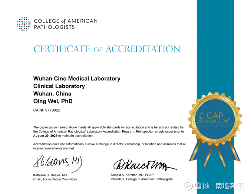 近日,武汉希诺医学检验实验室收到美国病理学家协会(College of American Pathologists,CAP)认证官方信函及认可证书,成功获得这一国际权威实验室认证。此次认证标志着武汉希诺医学正式迈入国际权威临床实验室标准质量认证体系行列,出具的检测报告具有全球互认性及国际公信力,为全球患者提供更高水平的检测保障。