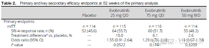 Evobrutinib和Fenebrutinib II期均未能观察到相对安慰剂的疗效优势