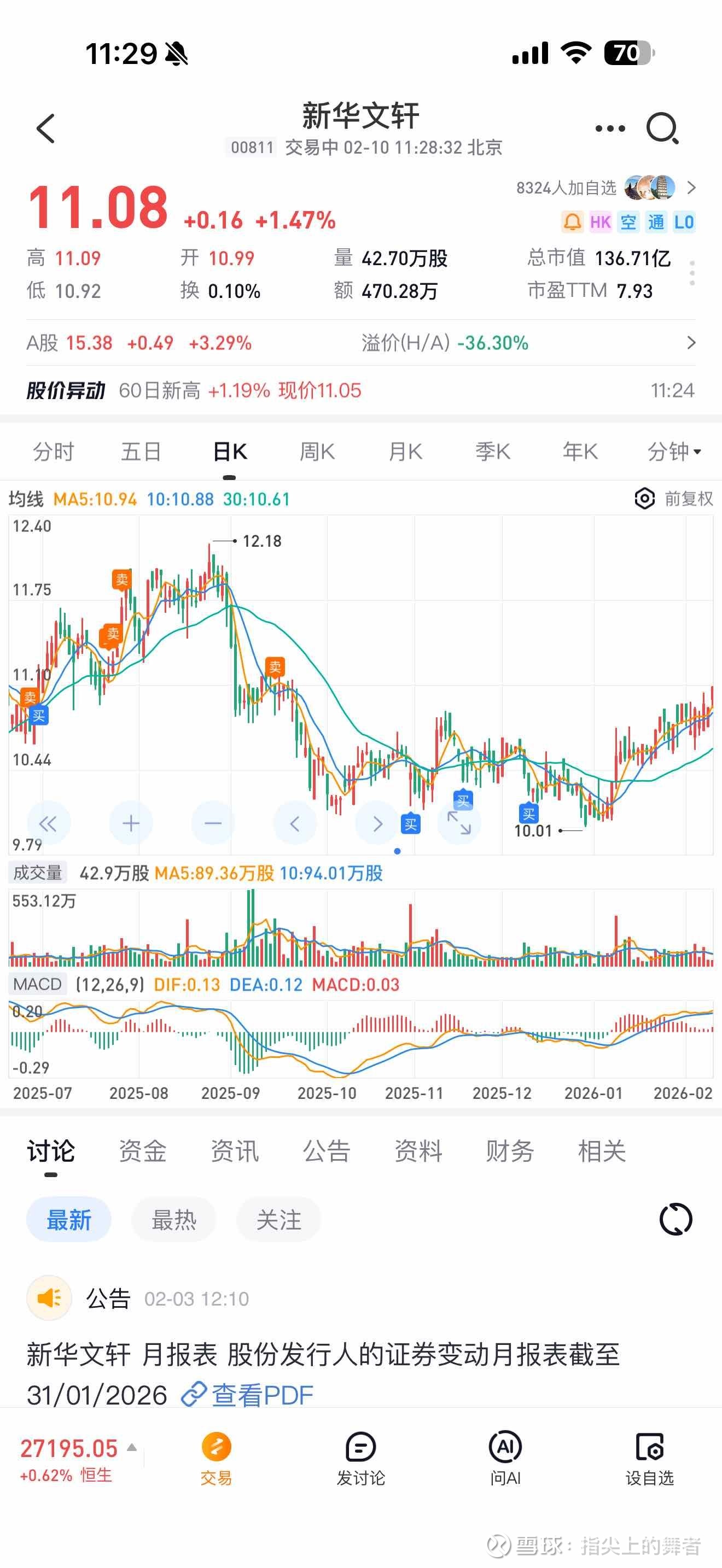前期11块多做了减仓,后面跌倒10块又接回来了部分。总体还是略微减仓的,后续营收和分红都需要持续观察