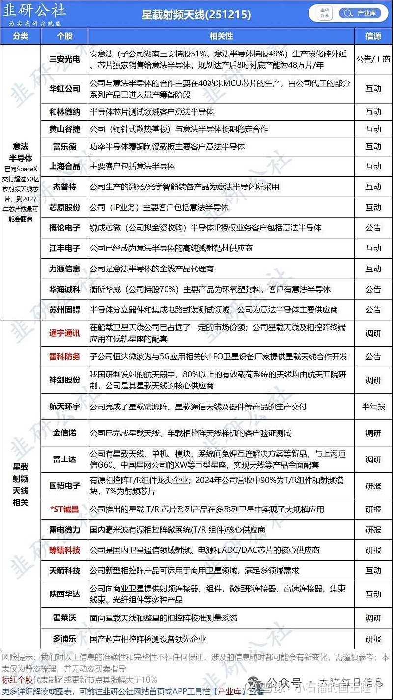 富乐华的DPC(直接镀铜)载板产品明确应用于5G通讯和工业射频领域,特别适用于高频、高功率电子模块 。而意法半导体向SpaceX提供的射频天线芯片正是需要高性能的基板材料来确保其在太空中的稳定性和可靠性。