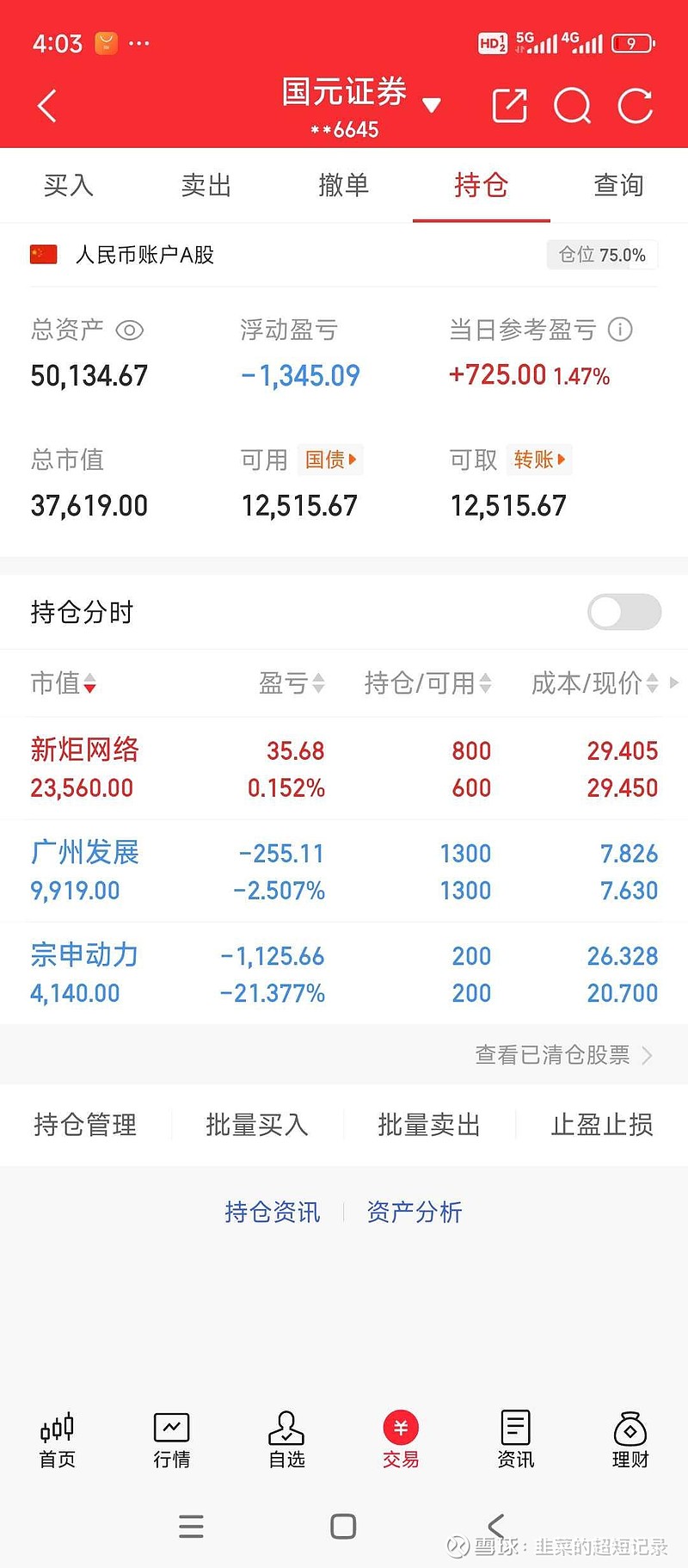 其余的没动 等明天看 新炬网络 和 广州发展两个 盈亏同源 就全部除掉