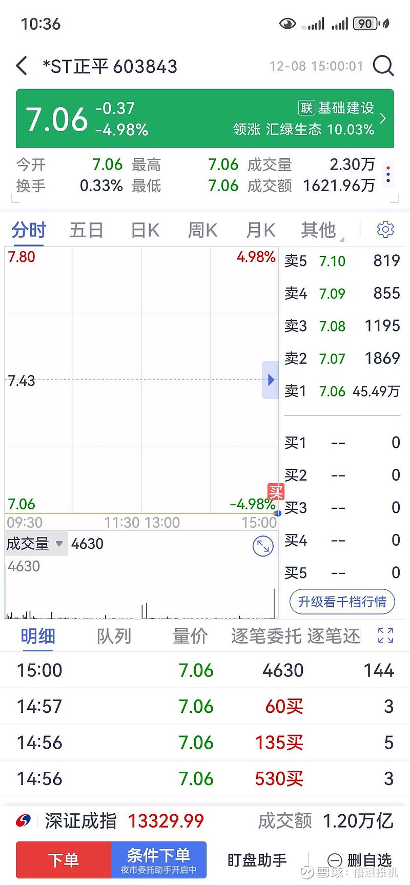 我傻我来买,解放各位聪明人,从昨天下午收盘竞价开始加仓,跌一板加一半。就想看看$*ST正平(SH603843)$ 这陀烂泥是不是真就没人要了,重整是不是一个战投都没有,M1M3是不是全是假的,万P智算是不是画大饼骗我这三瓜两枣……