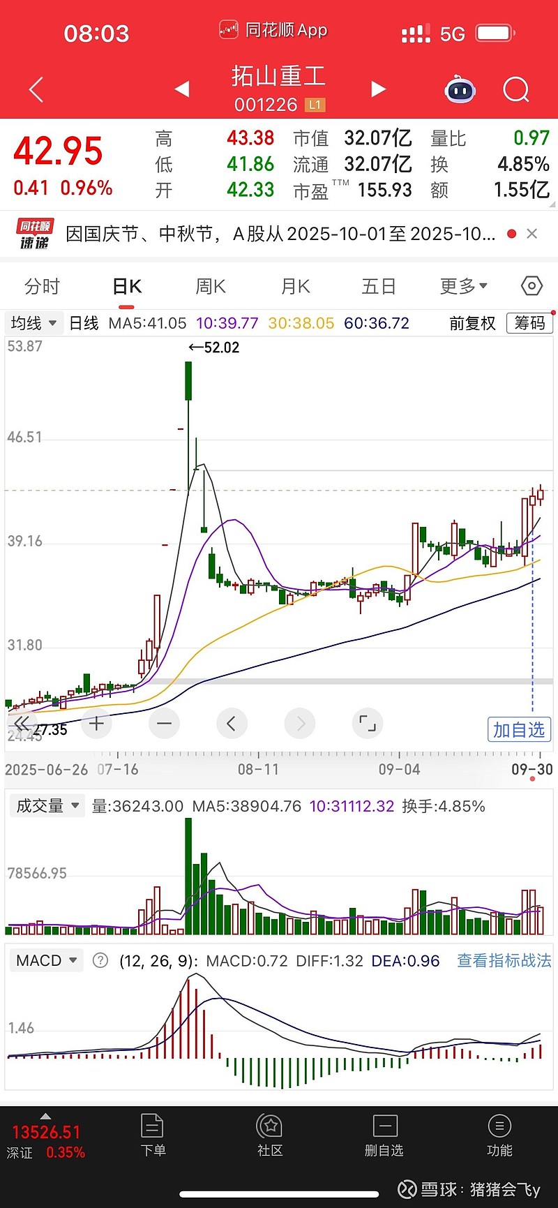 拓山重工多头排列,从之前的下跌回调,慢慢已经