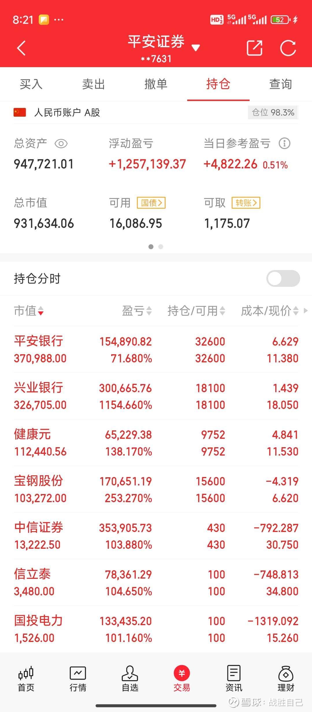 ,目前持仓兴业银行,中信证券,平安银行,健康元,宝钢股份。$上证指数(SH000001)$ $上证50(SH000016)$