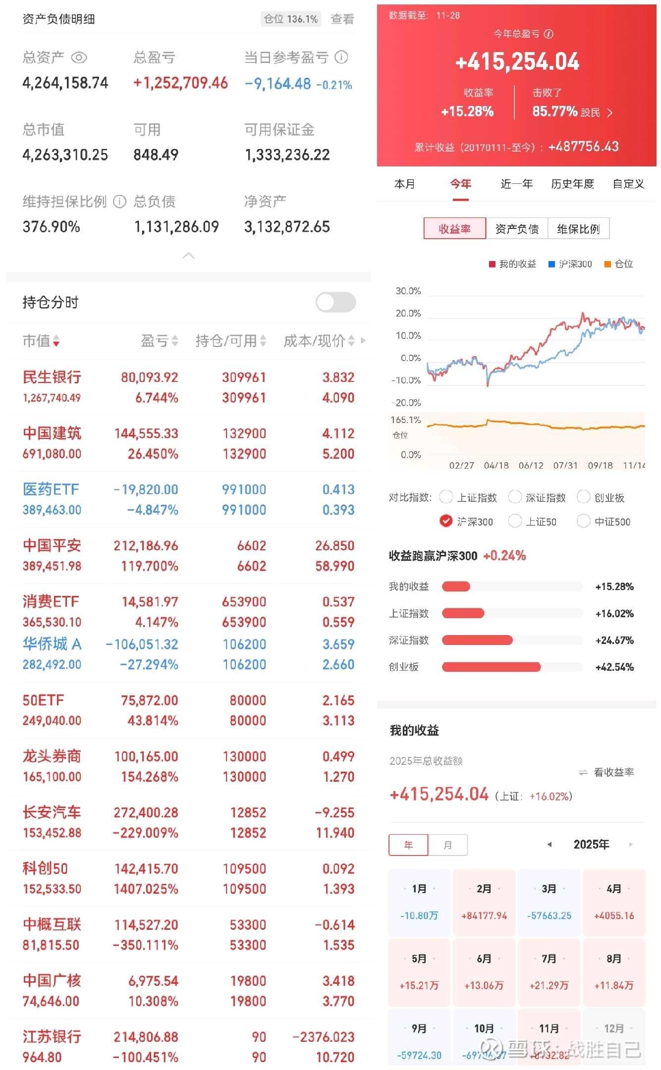 一,今年十一月收盘持仓盈亏与今年收益情况。
