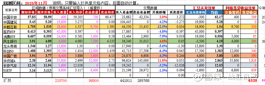 落袋为安最多还是华侨城A,月度中出现两个涨停板,之后剧烈波动,网格大量成交。中国建筑,医药ETF,龙头券商,长安汽车四只股票全月只有买进网格成交,没有卖出成交,未能产生落袋为安收益。