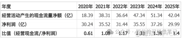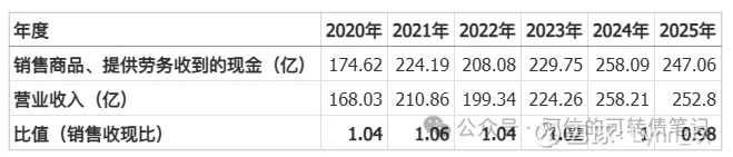 所以销售收现比从 2021 年的 1.06 微降到 2025 年的 0.98,真不是回款崩了,更像是业务结构变了带来的正常波动。