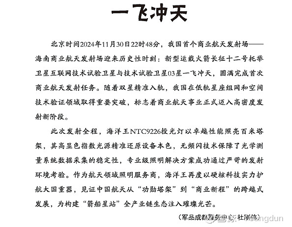 妥妥的商业航天概念股,一飞冲天
