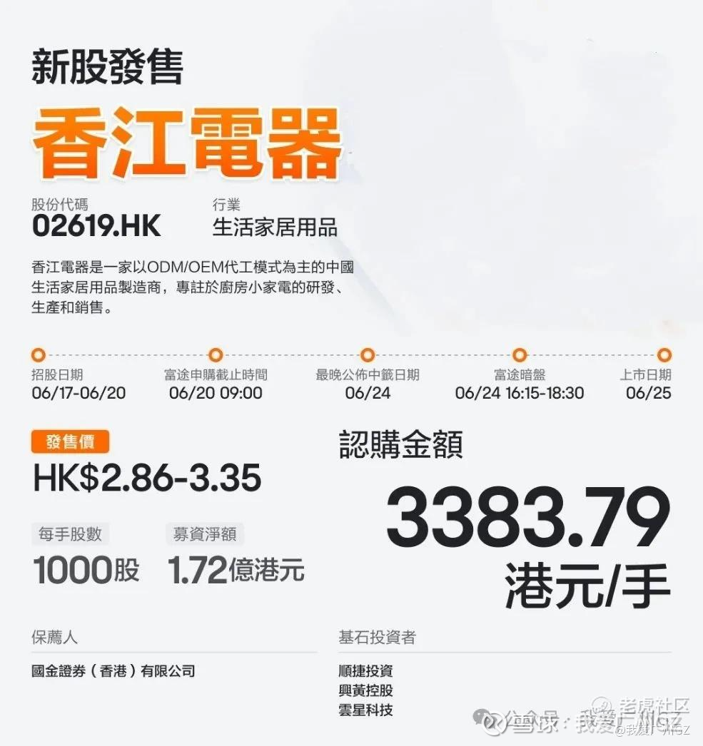 1、发行价2.86-3.35港元,募资1.72亿,一手申购3383港元,发行比例25%,承销费占比5%,承销费有点高,对比一下:三花承销费0.8%,宁德承销费0.2%