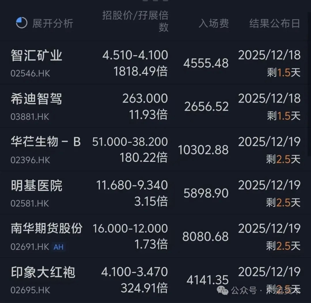估计最后矿业孖展上4000倍没问题,大红袍上1000倍有机会,华芢生物500倍不到。