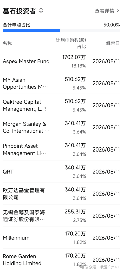 基石比例满了,Oaktree(橡树资本)、Pinpoint(保银)、AMF、摩根士丹利,阵容非常一流。