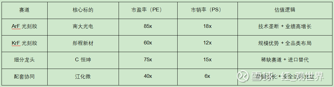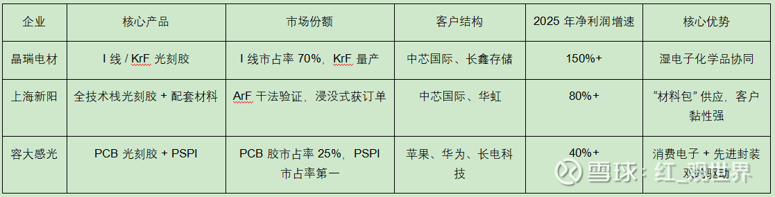 2. KrF 光刻胶:替代空间 50 亿元(2025 年)→150 亿元(2030 年),复合增速 18%,重点关注彤程新材、晶瑞电材;