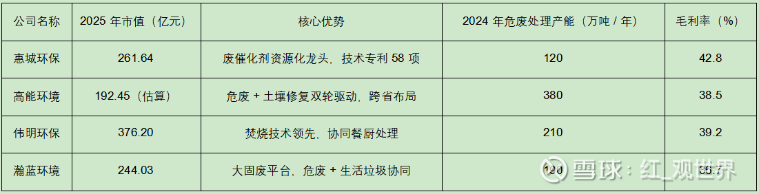 • 工业固废占比 65%(2025 年产生量超 32.5 亿吨),其中危险废物(简称 “危废”)占比约 3.5%,但因处理难度高、资质壁垒强,成为利润率最高的细分领域;