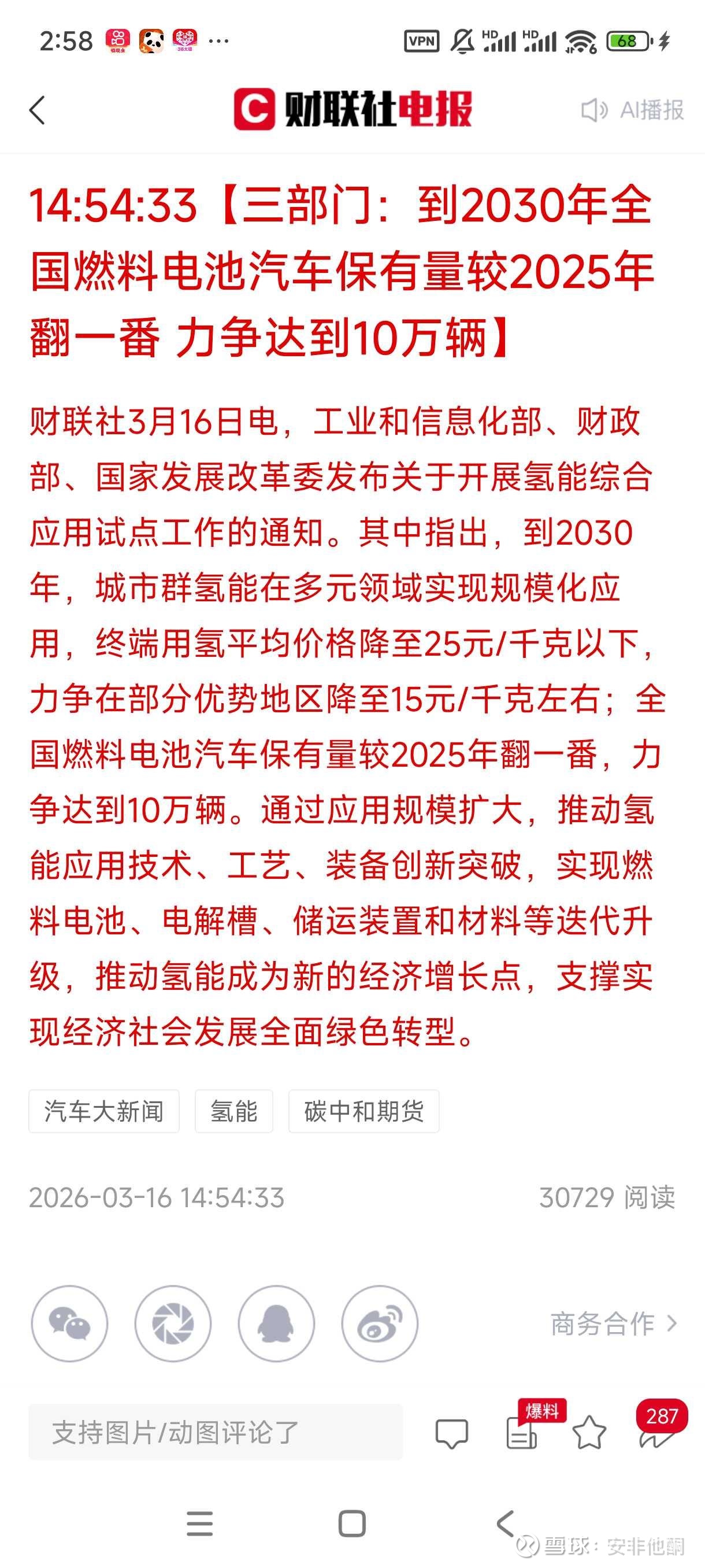 4. 收盘前刚发的,重点推进氢能燃料电池建设。