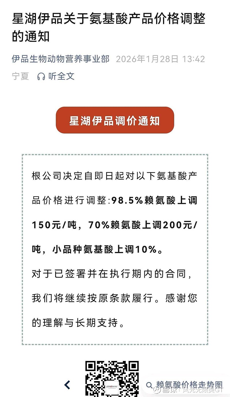 关于星湖伊品主要产品提价通知