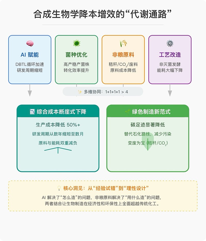一个更根本的趋势是:未来的很多东西,将不再是“炼”出来或“造”出来的,而是被“种”出来或“发酵”出来的。合成生物学,结合AI的智慧与非粮的馈赠,正在为我们勾勒一个资源循环、环境友好、成本可控的制造新纪元。这不仅是技术的进步,更是一场生产方式的深刻革命。