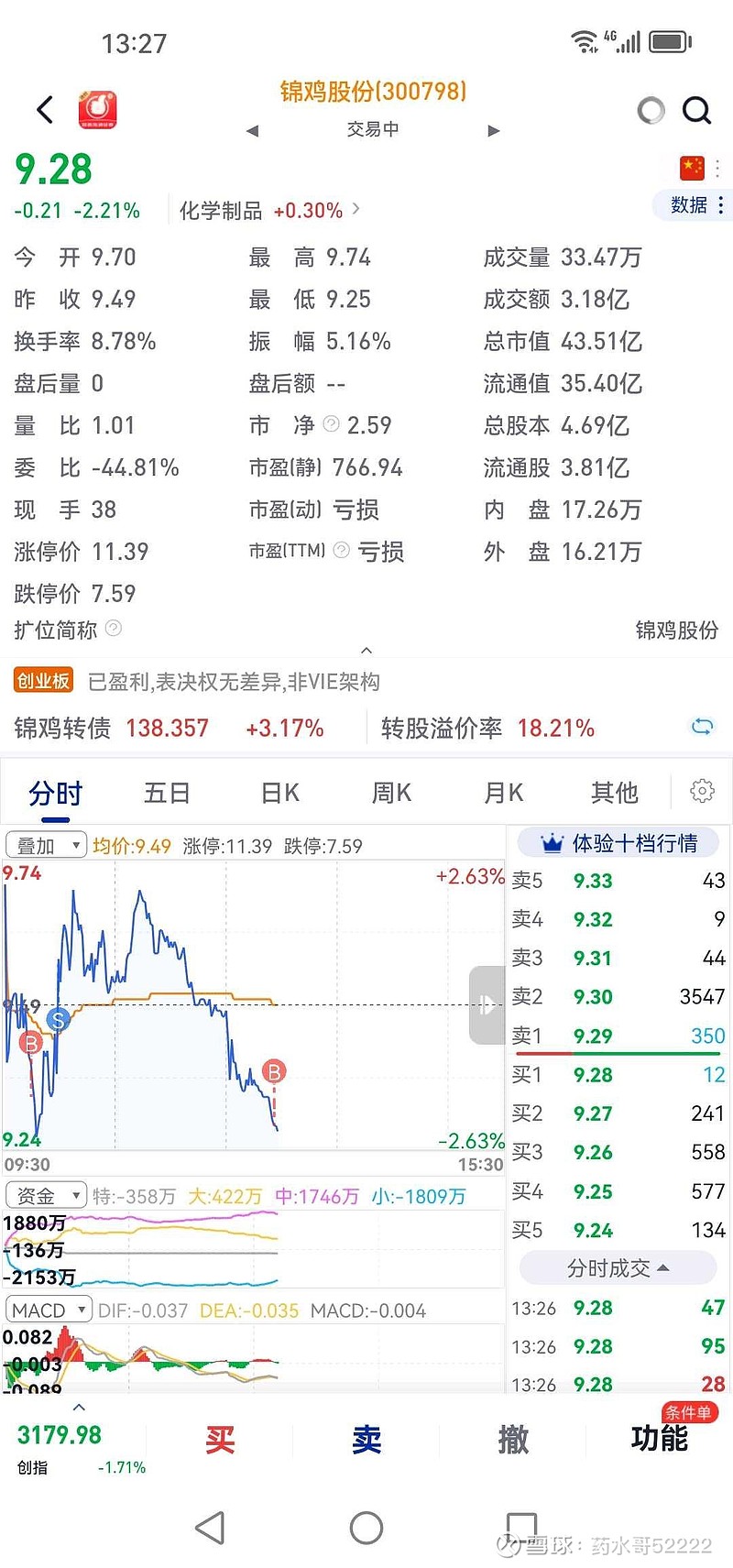 $锦鸡股份(SZ300798)$