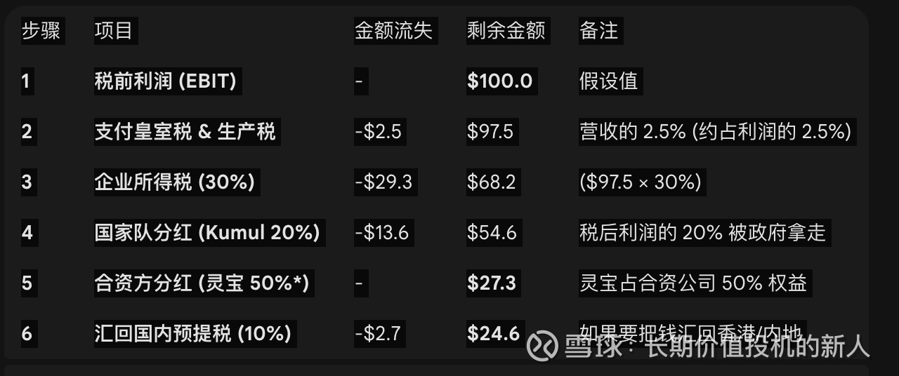 国家队(Kumul):拿走项目 20% 的利润(优先分红)。