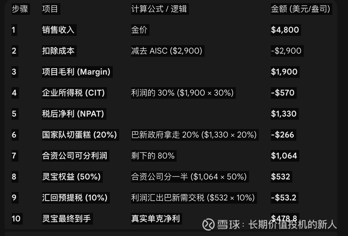 根据巴布亚新几内亚(PNG)复杂的**“税+费+国资抽成”结构,我们对 Simberi 2026年的真实净利润 进行最严苛的穿透式计算**。