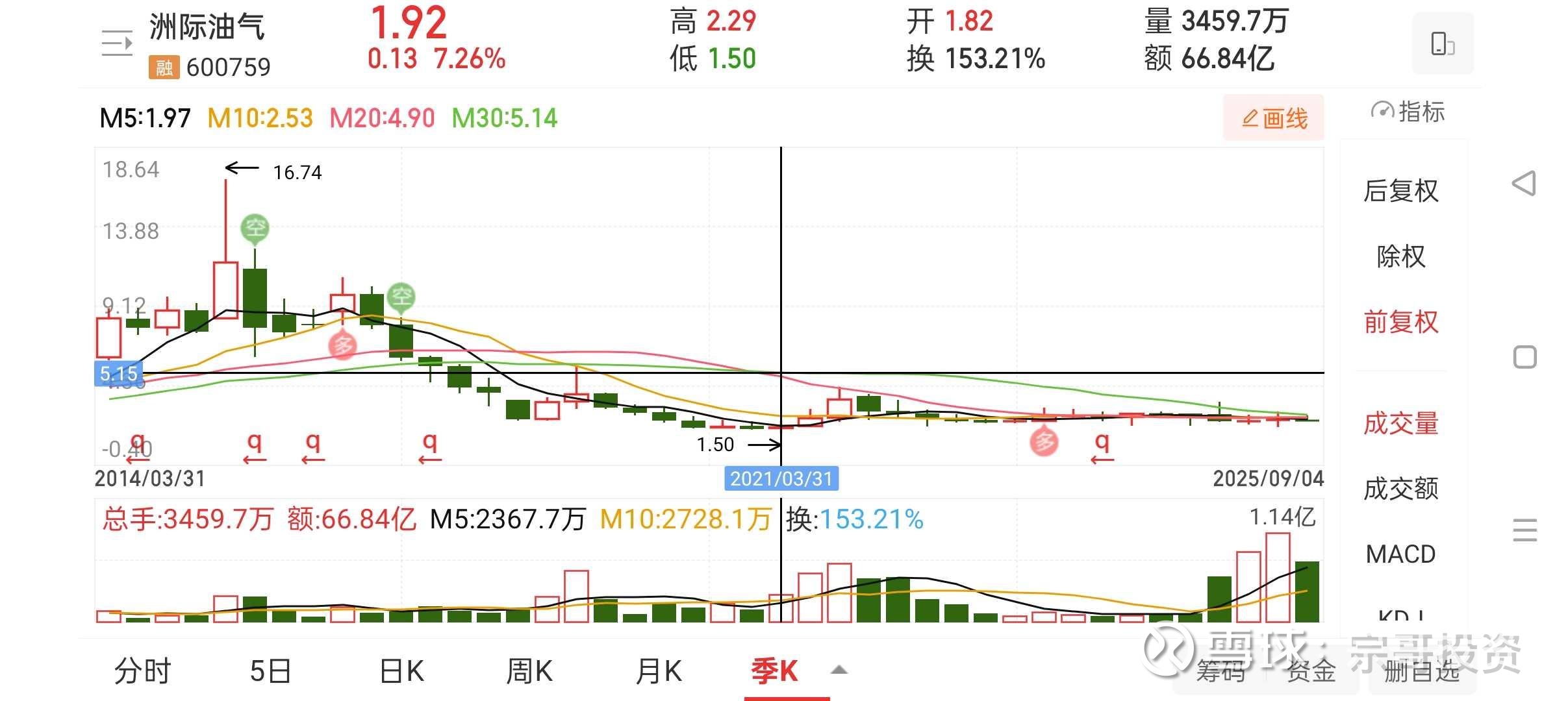 洲际油气的专属熊市周期(2015年)16.74元下跌到(2021年)股价1.5元