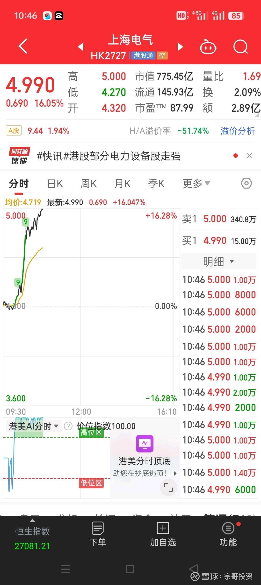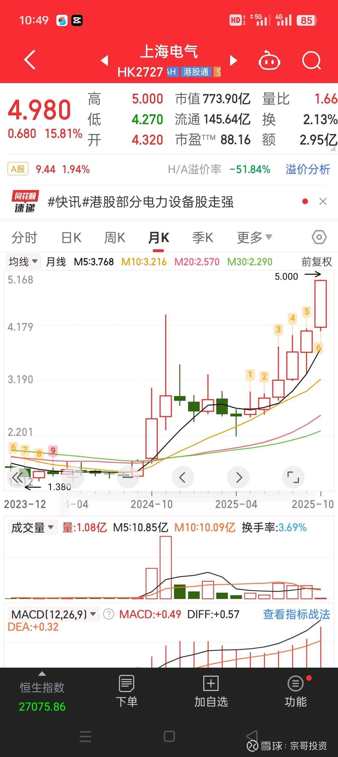 宗哥投资概念股,上海电气,