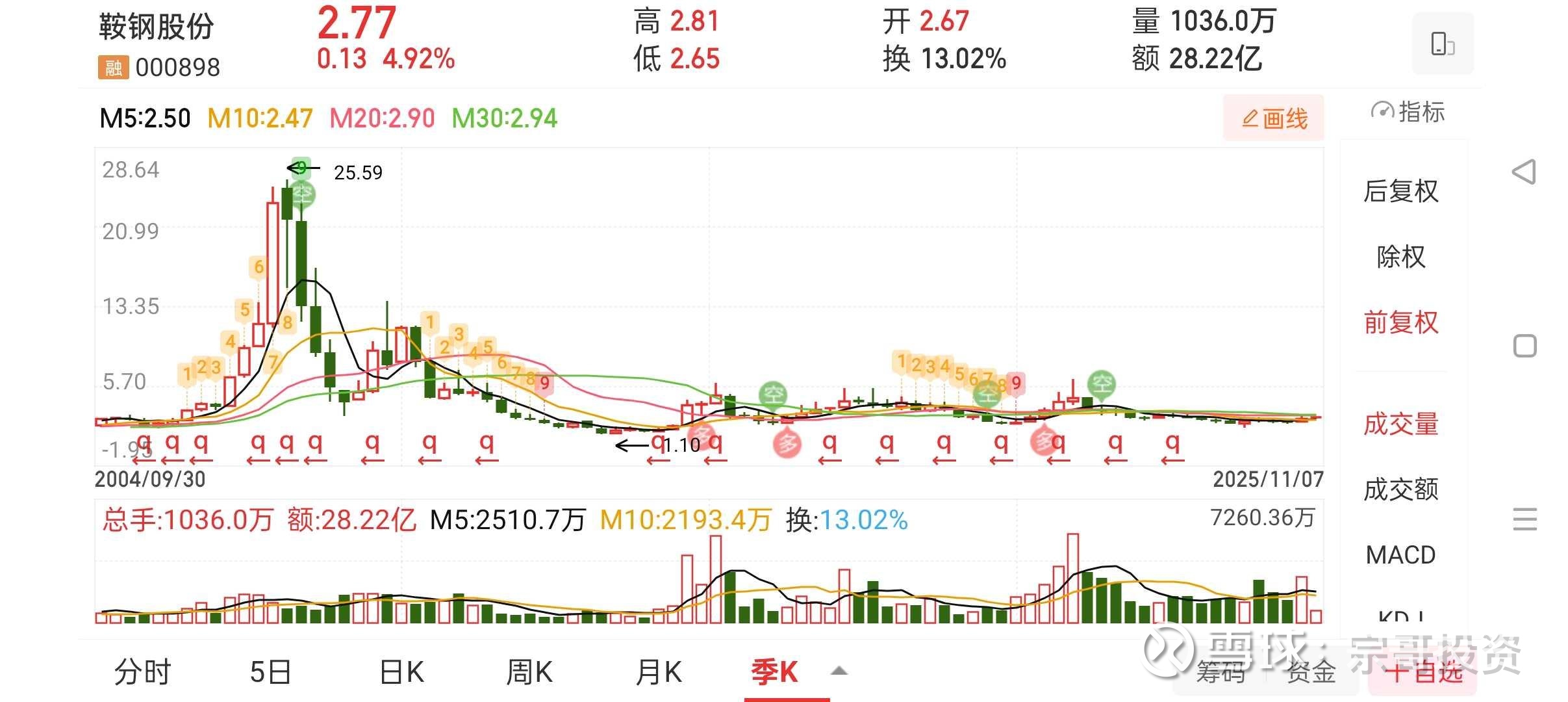 截至2025年11月7日,鞍钢股份A股股价为2.77元,市净率为0.5674倍,远低于行业平均水平,具有一定的估值优势。如果公司的转型和改革能够顺利推进,盈利能力提升,其估值有望得到修复。