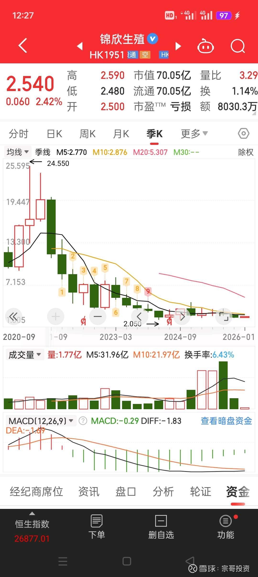 2.05港元。