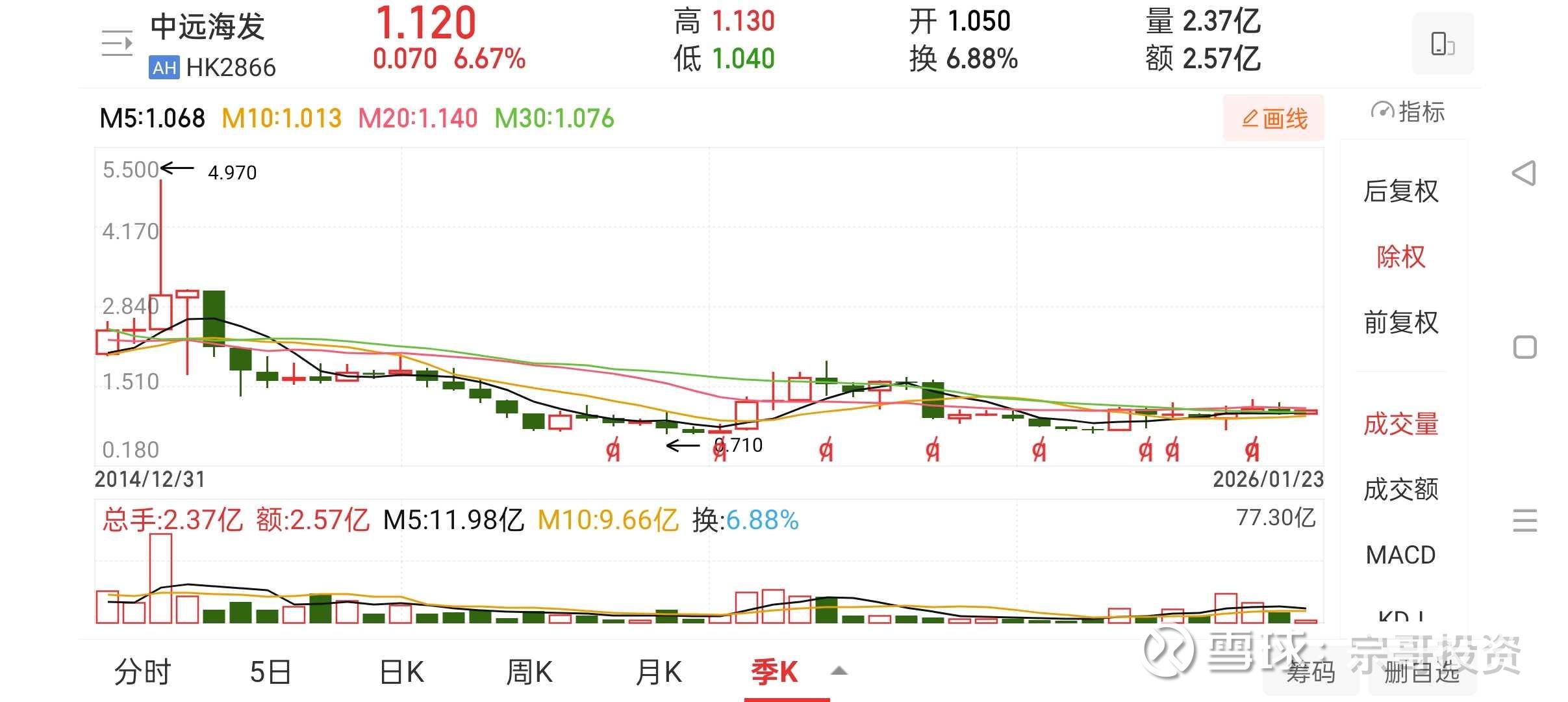 专属熊市周期从2015年4月股价4.97港元,