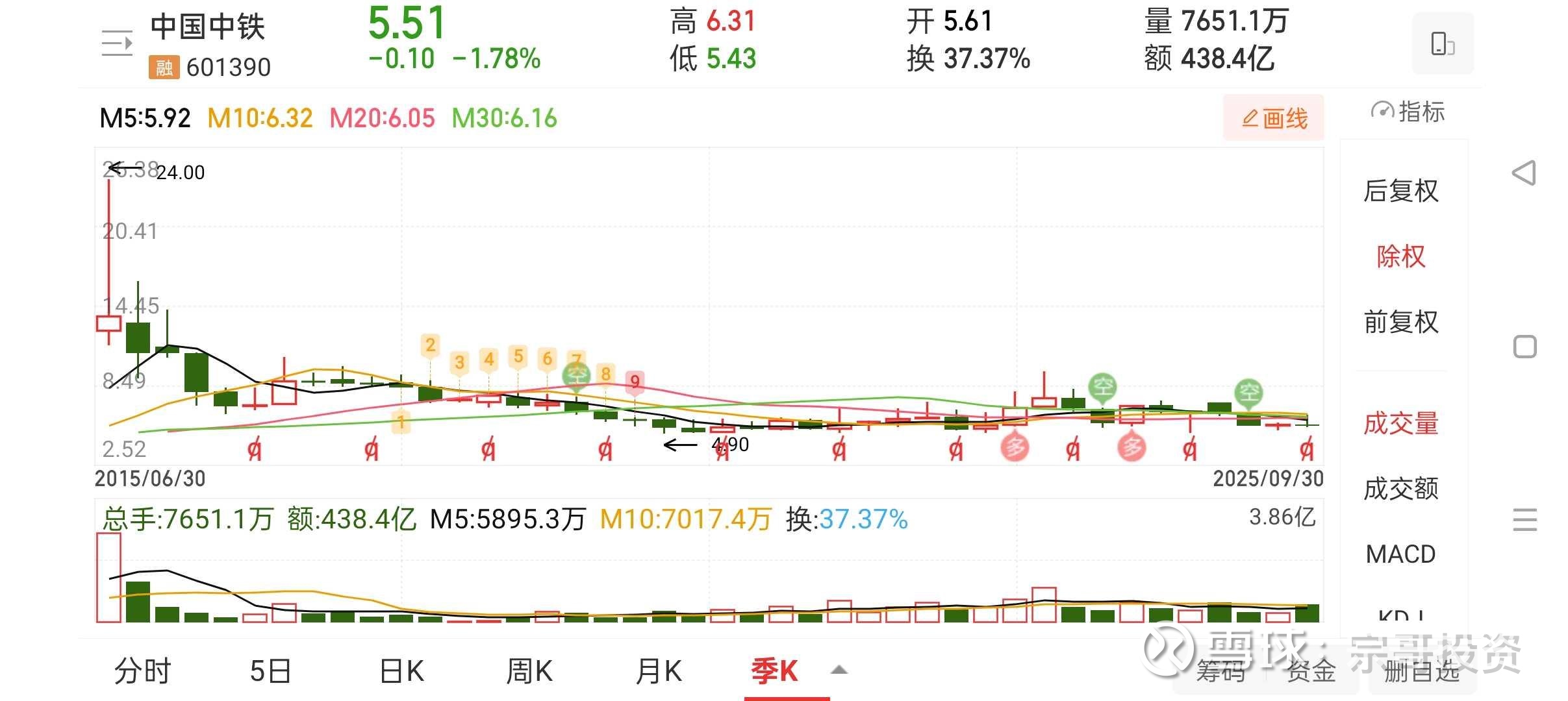 上一轮熊市中从2015年24元到2020年4.9元的深度调整,