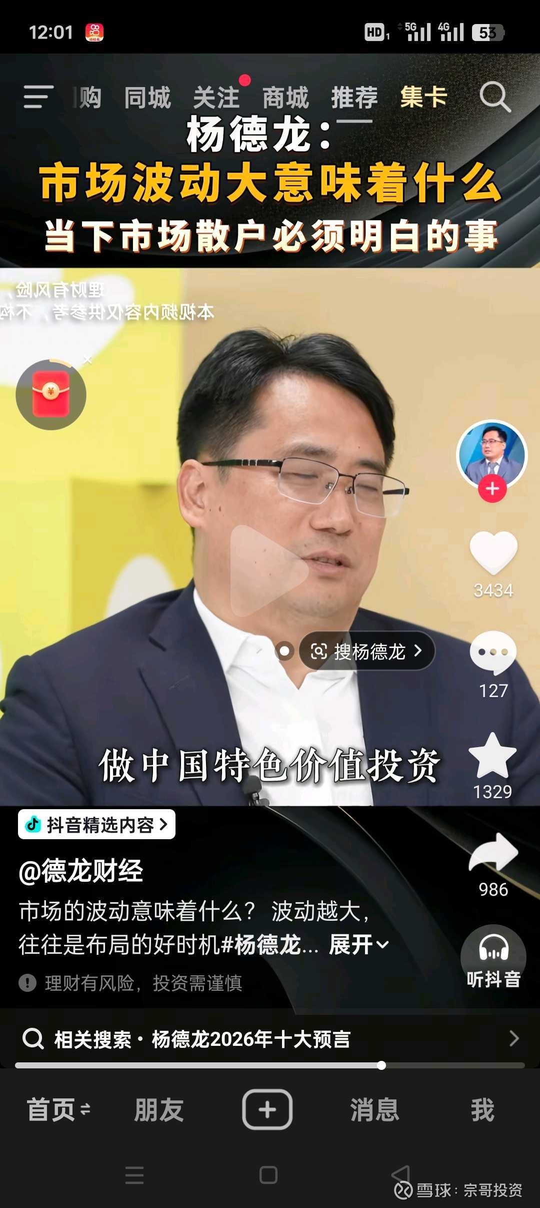 杨德龙是国内最早、最持续、最系统推广**“中国特色价值投资”的公募派分析师、财经大V,他这套理论不是随便说的,是他十几年在A股、港股、美股对比后,总结的专门适配中国市场、政策市、国企市、牛短熊长、周期主导**的投资体系,和西方巴菲特价值投资有本质区别。