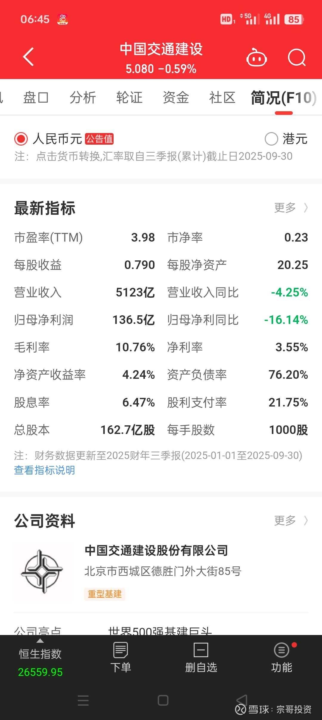 中国交通建设0.23倍市净率