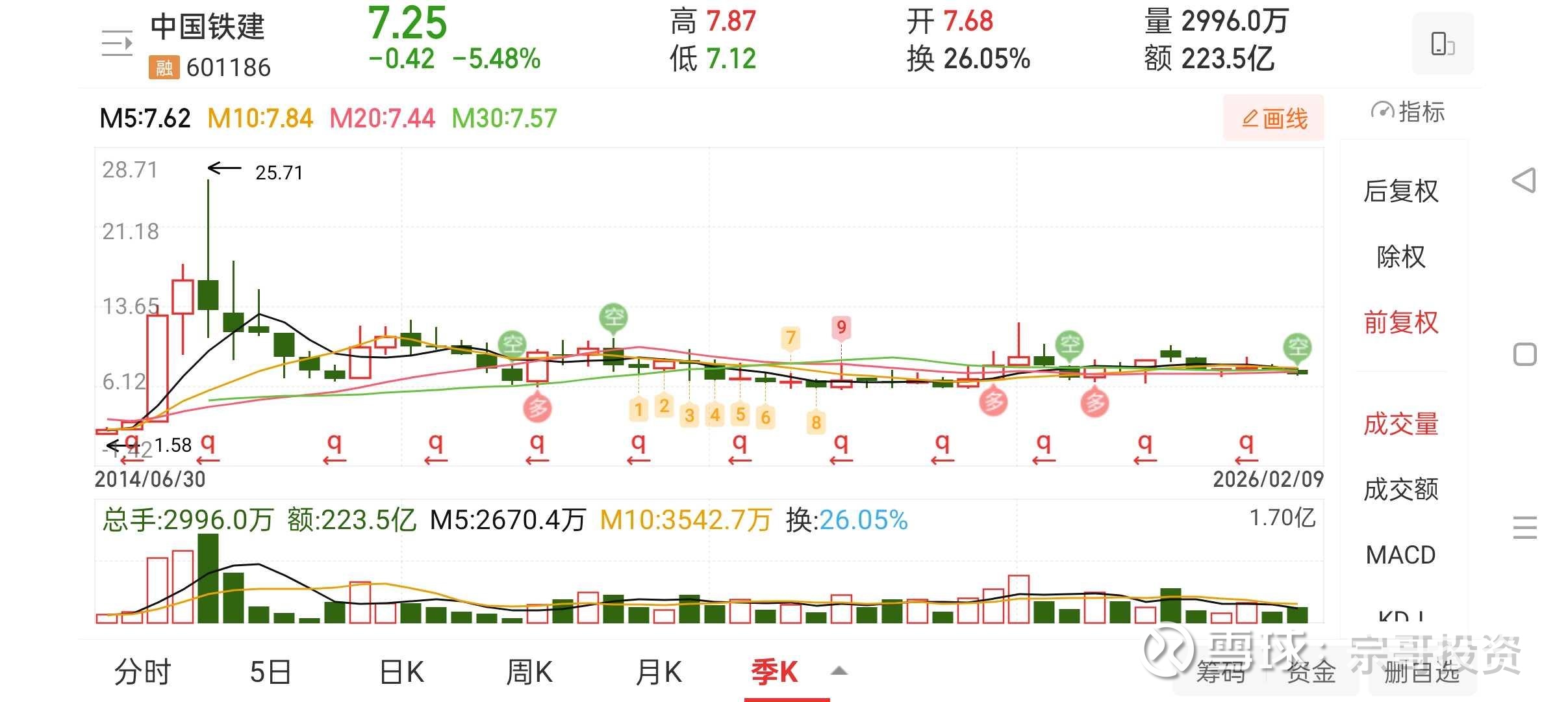 中国中铁是进攻型首选,核心逻辑来自十五五开局基建投资托底、特别国债与重大项目落地,叠加铜钼等资源价格上行带来的业绩增量,回购与大额订单催化频繁,股性活跃适合能承受中等波动、做周期主升与波段操作的投资者,是三强中赔率与弹性最优的标的。