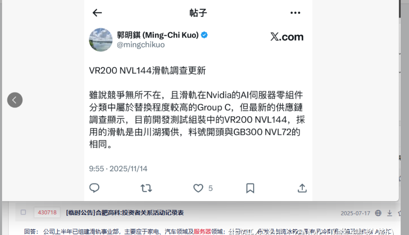 合肥高科——合字辈(合富中国) ,北交唯一对标,对标合富中国,还是两岸融合福建概念,服务器滑轨马上投产,基本面极具变好。底部中线推荐