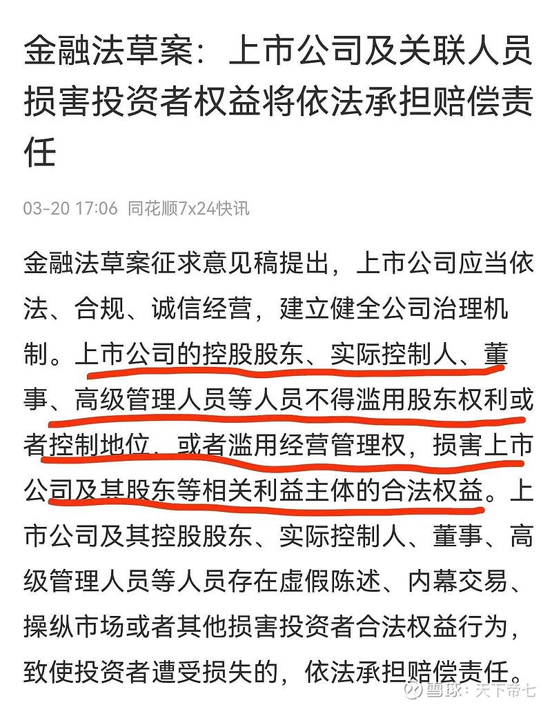控股股东不得滥用股东权利或者控制者地位,这个就适合我们,百分之六十多中小股东反对的增发方案,按照这个条例就得废弃增发。$诺普信(SZ002215)$希望尽快实施,落实到实处。这样也就好理解为啥这段时间诺普信股价被砸了。之前想接盘后参与增发的资方,一看这么大比例的反对,按照新规,得废弃增发,于是跑路了。未来就更光明啦!本来公司业绩积累的利润资金和政策性农业贷款就足够覆盖所需的十五亿,根本没必要增发。25年+26年利润,足够了。#增发# #戴维斯双击#