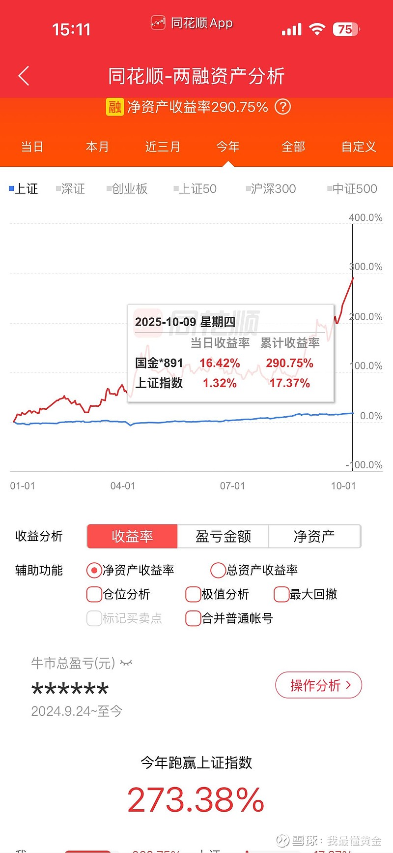 一个深耕黄金股投资的闲人!现在最让我欣慰的是,再也没有人笑我躲在黄金股里躲牛市了!前几个月我被人各种的嘲讽!什么黄金股涨不过实物黄金,黄金股和黄金涨幅没有关系,你根本就不懂黄金,你就是取个名字吸引眼球而已!还好时间不会辜负一个价值投资者!我坚持下来了!在这中间我也怀疑过,也曾绝望过,特别是之前和我一起的多头都不作声了!就剩我一个人在坚持看多黄金股,看多山金,那时的我好孤独!好了,不感慨了!收益利润曲线是最好的安慰剂!$山东黄金(SH600547)$ $赤峰黄金(SH600988)$ $中金黄金(SH600489)$