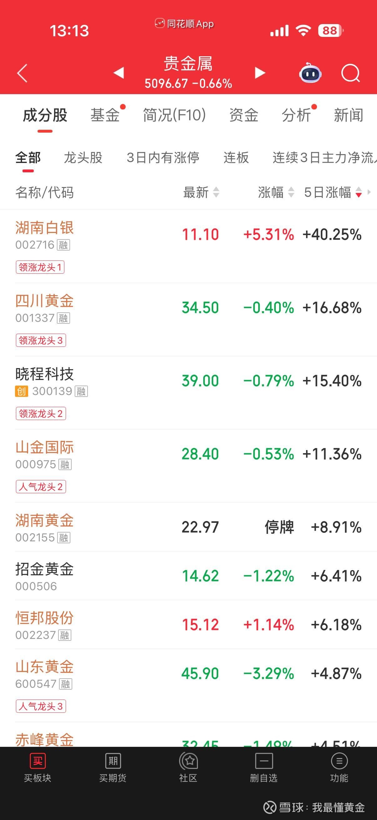 这样涨,现在我这个专业做贵金属矿业股的都跑不赢贵金属板块指数了!不过我相信,把时间拉长,我依旧可以跑赢板块的!
