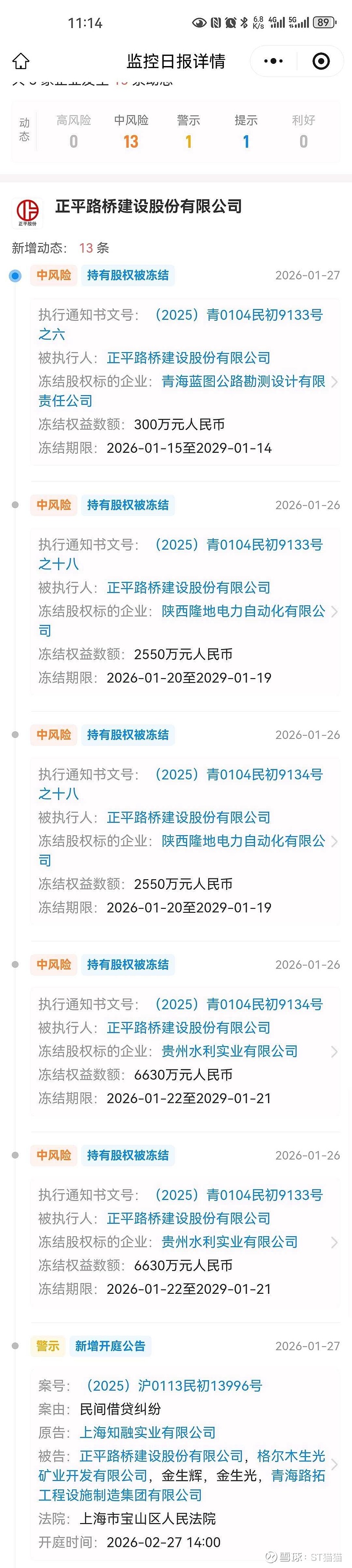 $*ST正平(SH603843)$ $*ST东易(SZ002713)$ 今天看到陕西隆力电力的申报,加上早都申请冻结的金九金,16家债权人就都凑齐了。正平,稳步推进!东易,债权人抛压越来越小,静待花开!