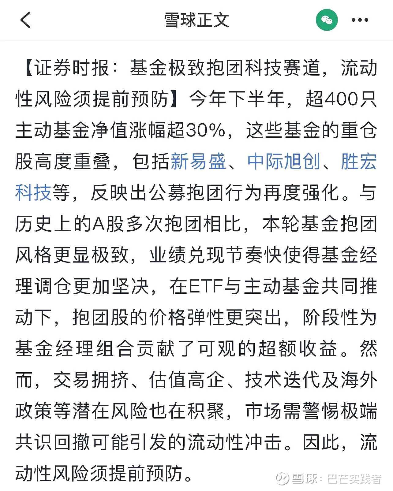 资金抱团,向来是灾难之源,需要高度警惕,希望这次能软着陆,立足于硬着陆。