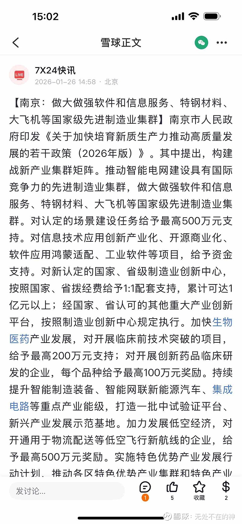 $润和软件(SZ300339)$ 政策提出对新认定的国家、省级制造业创新中心给予1:1配套支持,最高可达1亿元。润和作为南京重点培育的“链主企业”,有更大机会参与相关创新中心的建设并获得配套资金。