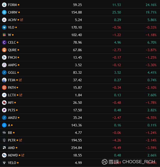 新增仓位: FORM/CHRM/VLO/ACHV;被止损: EME/GH;手动买出:25%的原本AMZU仓位;