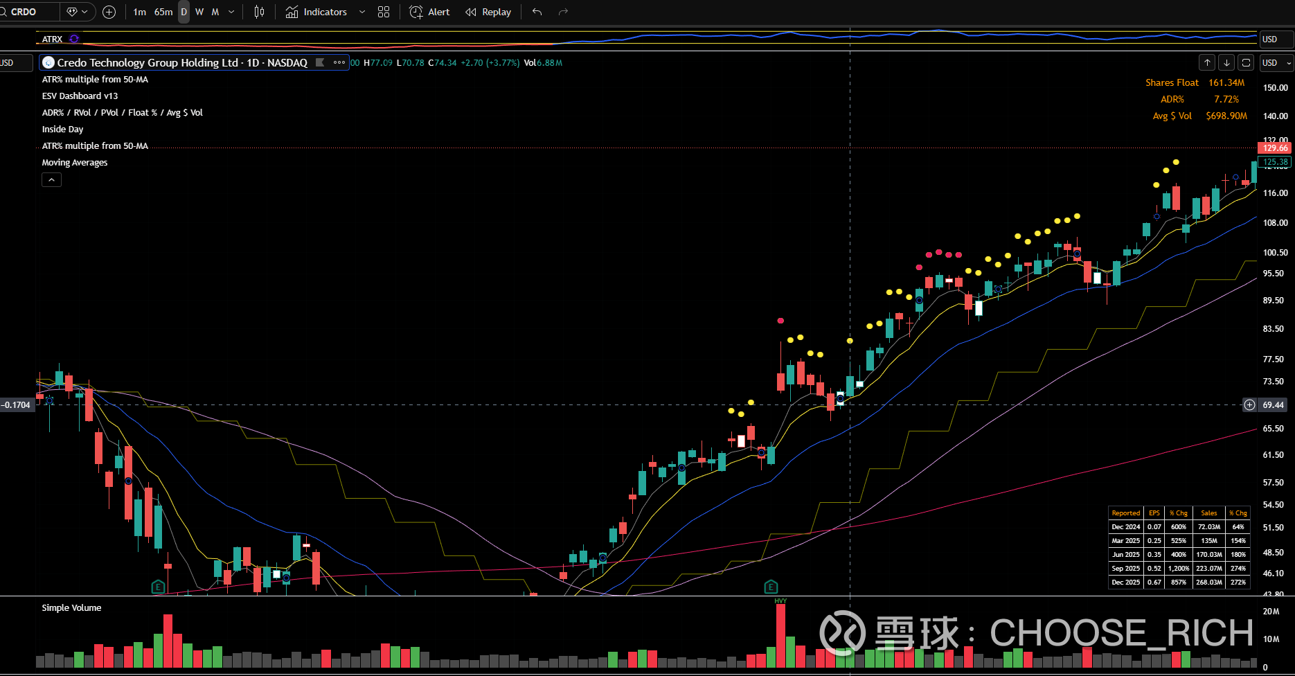 比如去年6月的CRDO,在虚线所指那天进,两个月接近翻倍。