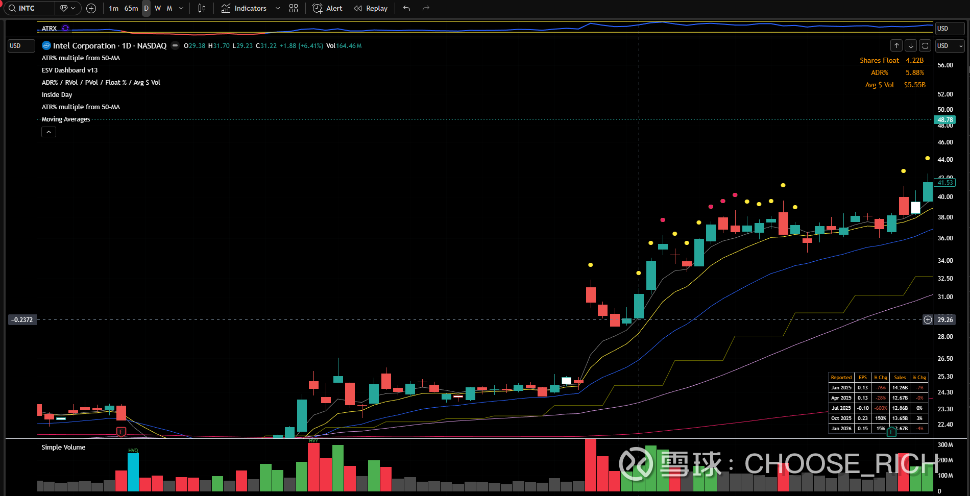 去年九月的INTC,在我虚线所指的那天进。后一个月涨了30%。