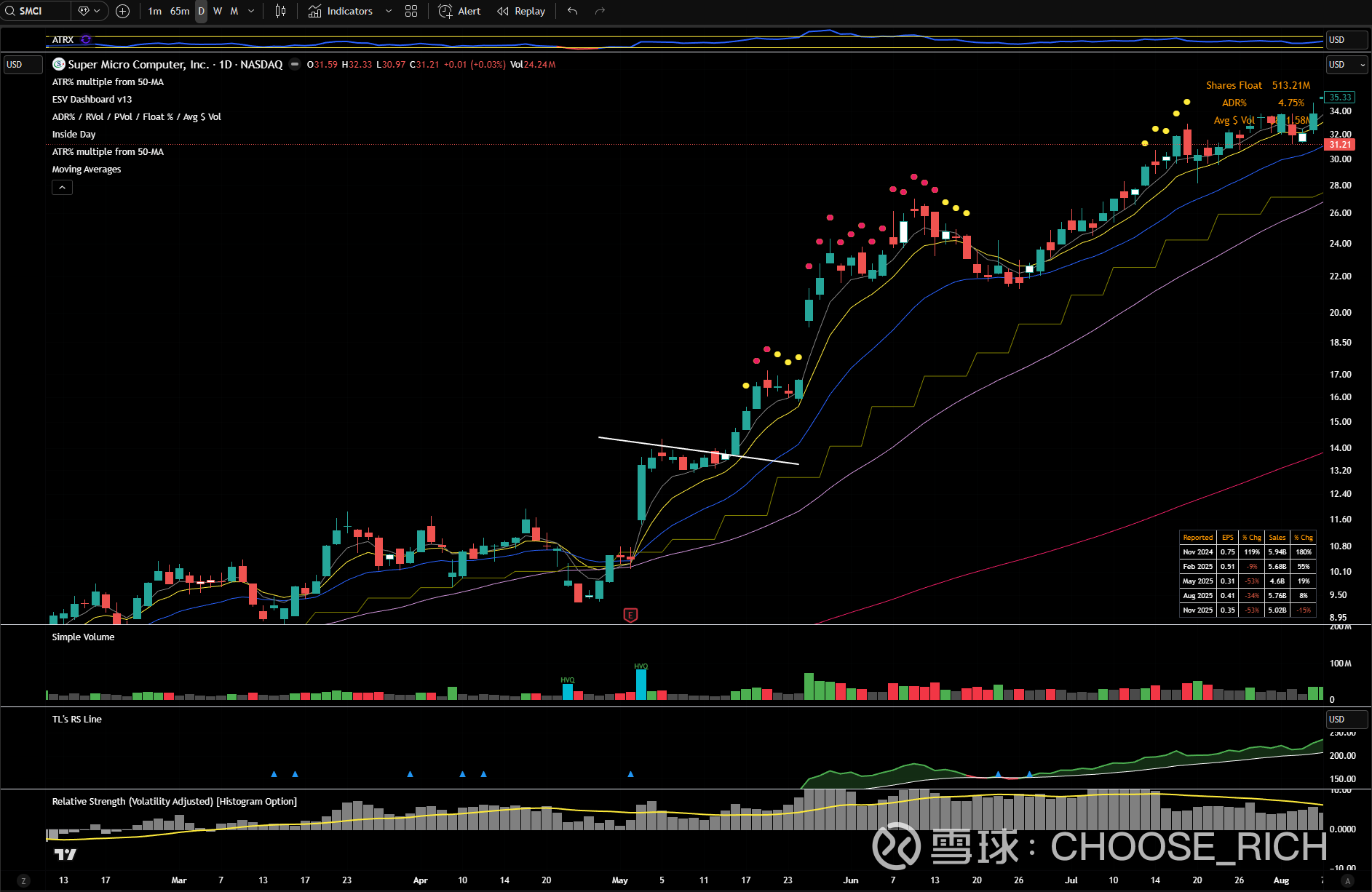 $超微电脑(SMCI)$ 在24年5月的形态,非常完美的旗形,十天翻倍,两个月三倍。