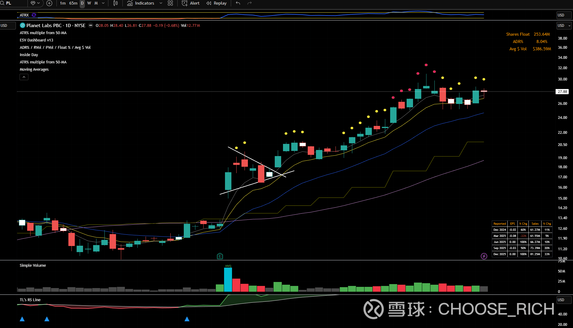 本季度最强的leader $Planet Labs(PL)$ ,从一个earnings引发的EP出发,形成一个六天的falg,一个月翻了将近一倍。