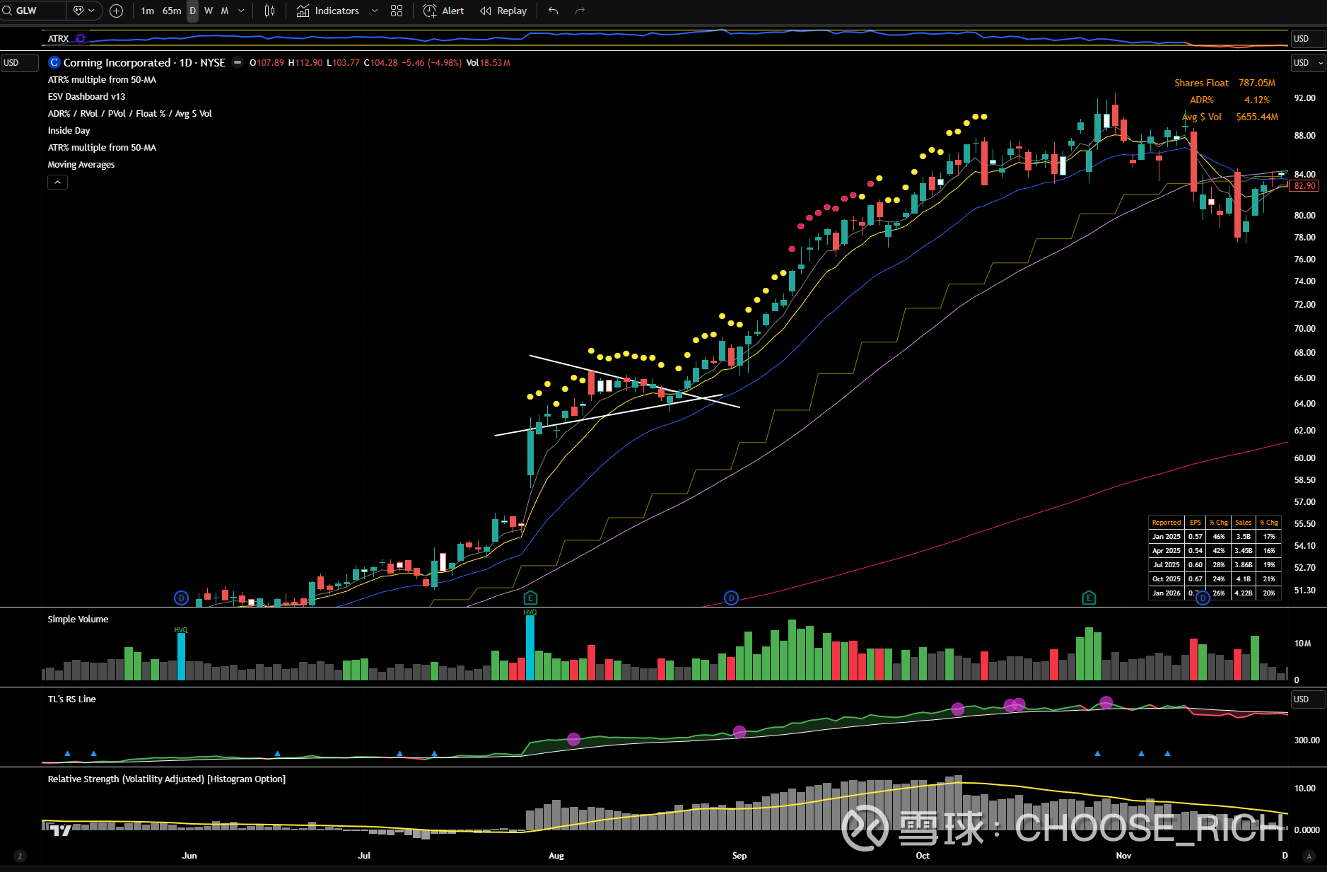 去年下半年的最大winner之一$康宁(GLW)$ ,也是开始于一个EP flag,两个月30%涨幅。