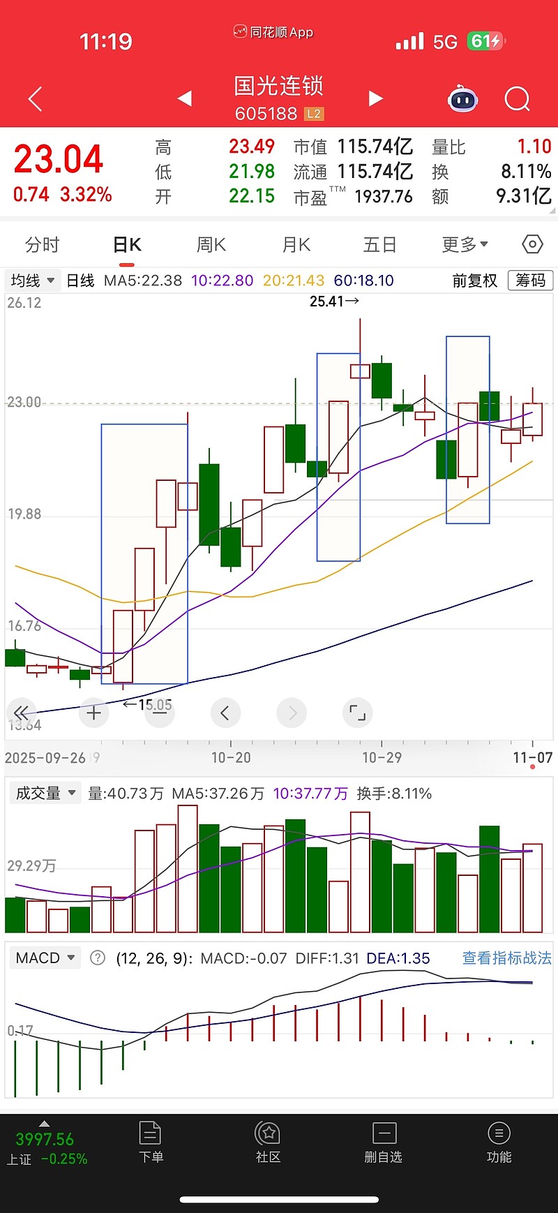 国光前三根放量,后两根涨停明显缩量,说明后面两根的目的就是洗盘,这种缩量涨停次日不能追,反而可以在涨停柱底部介入。最近两个交易日微放量上涨,有人在洗盘底部以拿筹码的方式买入,后市看多。