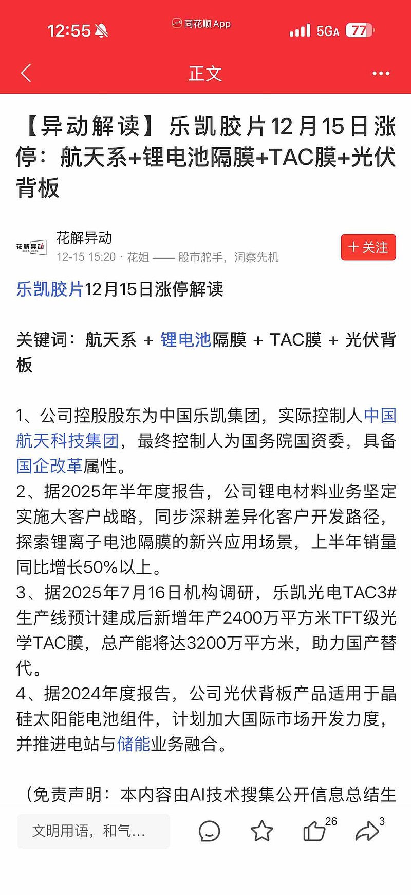 $乐凯胶片(SH600135)$