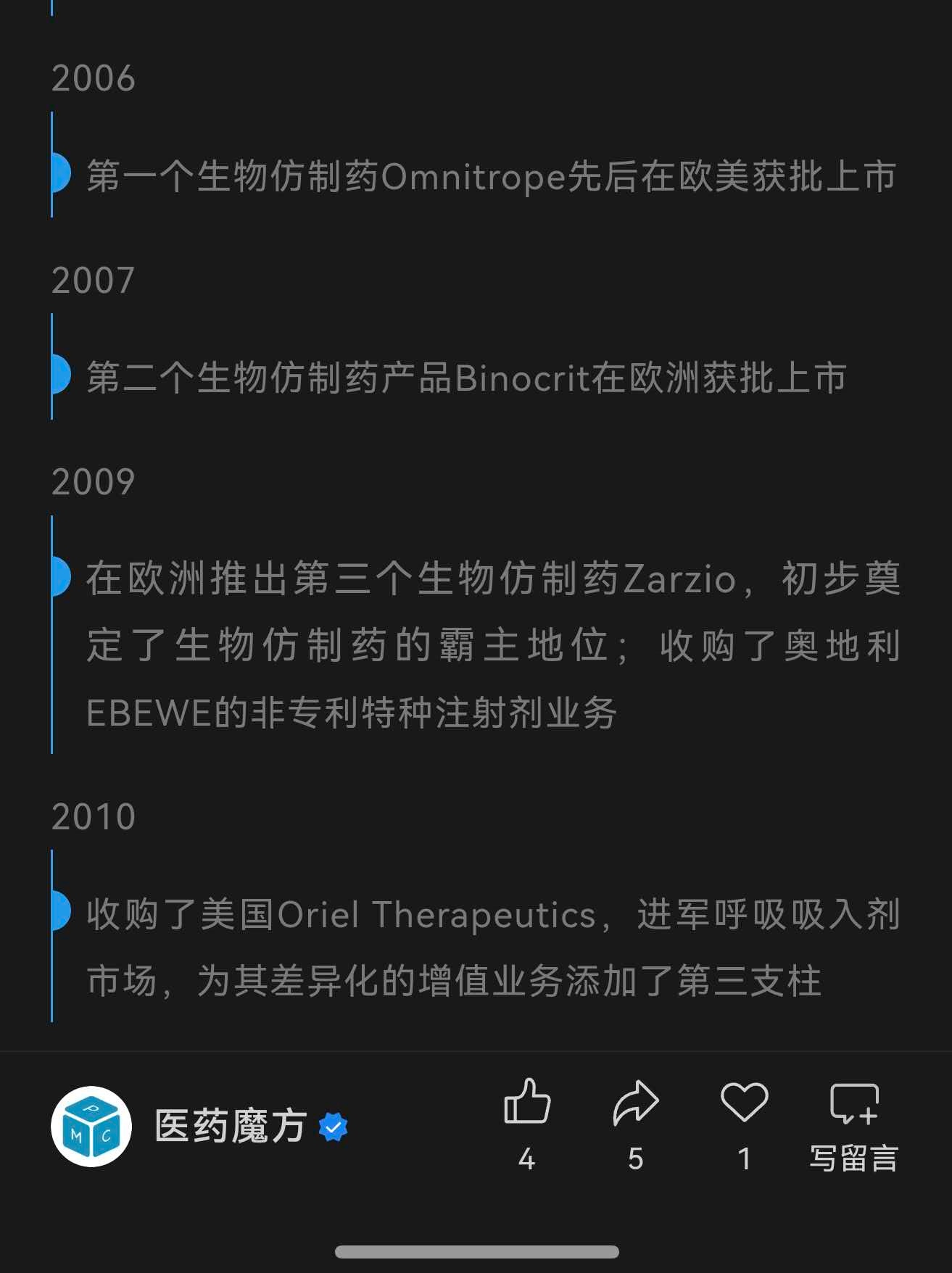 回复@以证据追求真相: 所以您说的通化东宝的情况和山德士目前查到的信息是不一样的。山德士如果有胰岛素也是代销别人或者和别人合作。而通化东宝的德谷胰岛素有自己的在研管线。//@以证据追求真相:回复@镇定的投资小剧院:我查了一下2010年之前山德士自己开发的生物仿制药没有涉及胰岛素的