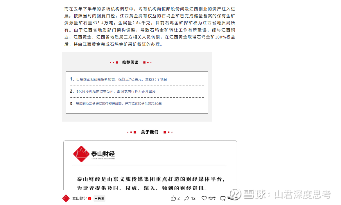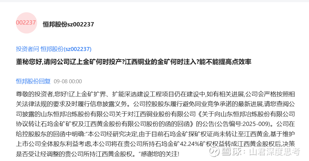 江西铜业作为控股股东(持股 44.48%),是国内铜行业龙头,拥有丰富的矿产资源和资金实力。其对恒邦股份的战略定位明确:将恒邦股份打造为黄金板块唯一上市平台,并承诺注入优质黄金资产以解决同业竞争问题。这一承诺为恒邦股份提供了长期资源注入预期,是估值提升的核心驱动力之一。