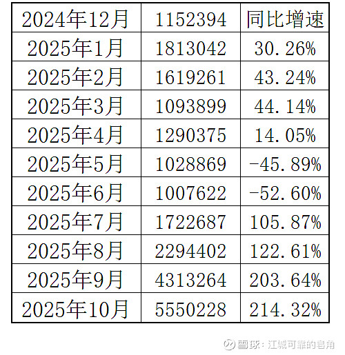 如图,该数据很好的匹配了经营层面的变化:1)24年5-6月,备战亚马逊Prime Day以及首次进入Walmart线下导致的大量备货;2)25年1-3月,芬太尼+一次钢铝税下抢出口导致的同比增长;3)25年4-6月,二次钢铝税成本抬升+线上价格竞争激烈导致的去库存;4)25年7-10月,新产品动销优秀+大规模进入线下渠道拉动进货量同比高增长。